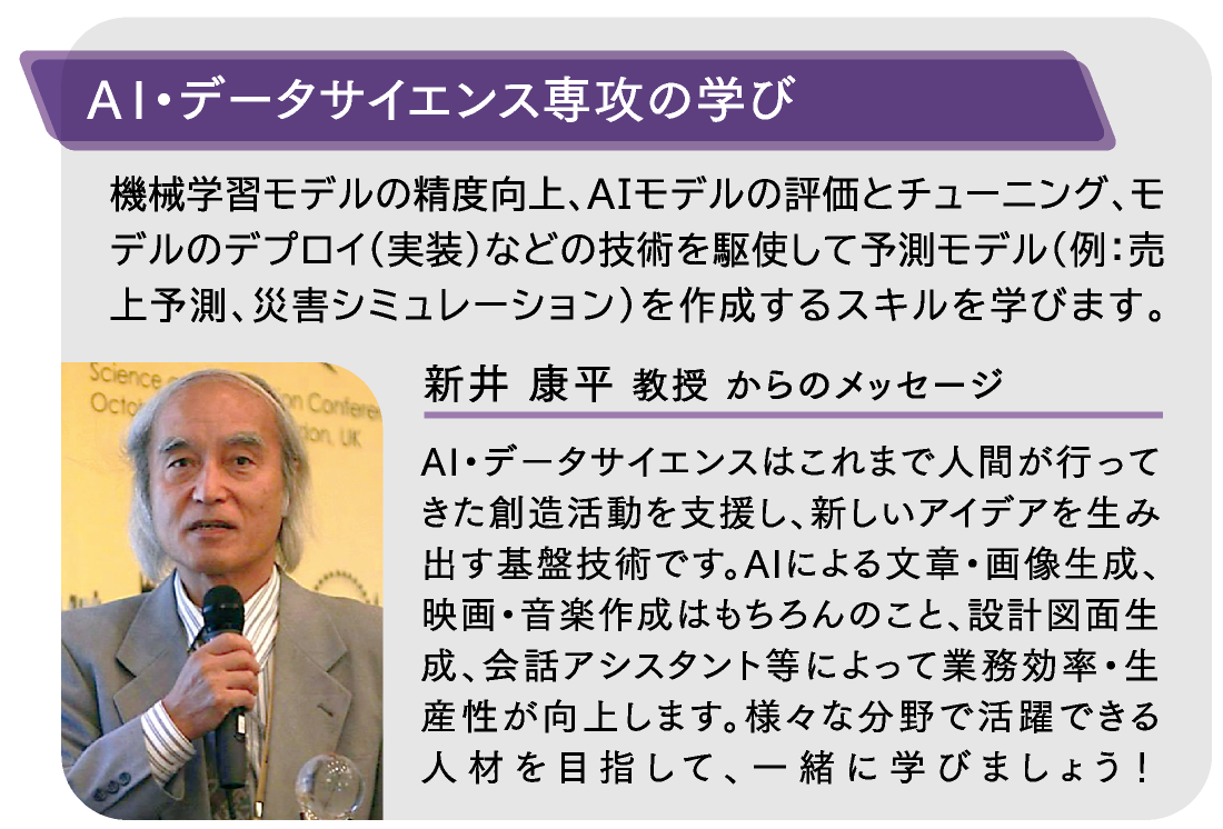 本専攻ではAI・機械学習による予測モデル構築で課題を解決するデータサイエンスを学びます。